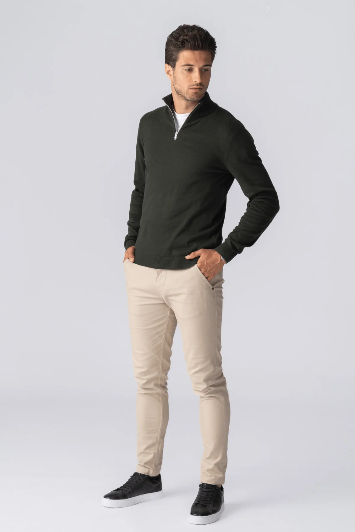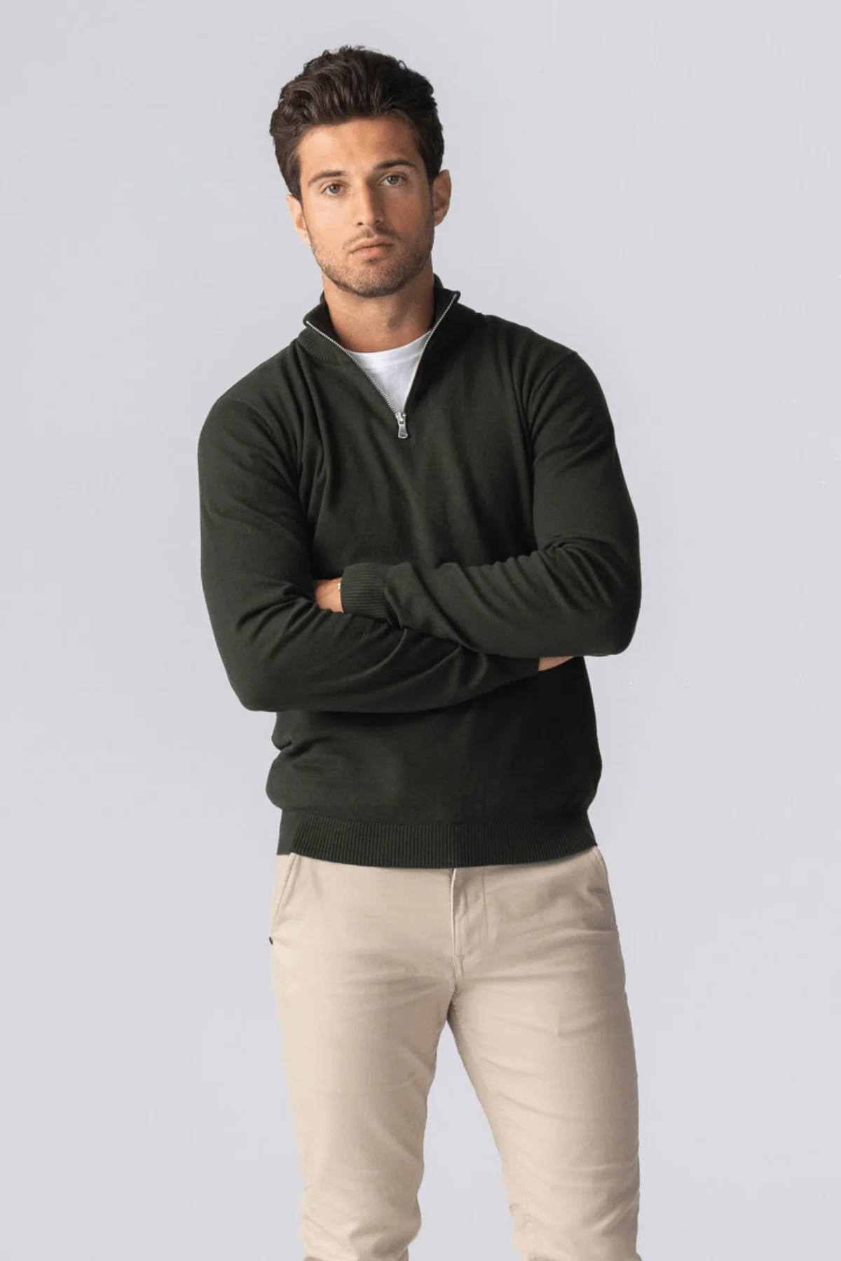 Descubre la mezcla perfecta de funcionalidad y moda con nuestro jersey de media cremallera en verde militar, diseñado para complementar el estilo de vida del hombre moderno. Tanto si estás explorando la naturaleza como disfrutando de fines de semana informales en la ciudad, este versátil jersey está diseñado para satisfacer todas tus necesidades.