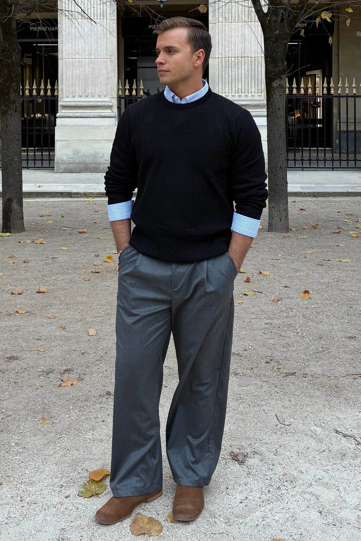 El diseño de cuello redondo y el corte regular hacen que este jersey sea increíblemente versátil. Puede combinarse con una camisa de cuello y unos pantalones para un look refinado, o llevarse de forma informal con vaqueros para un conjunto relajado pero elegante.