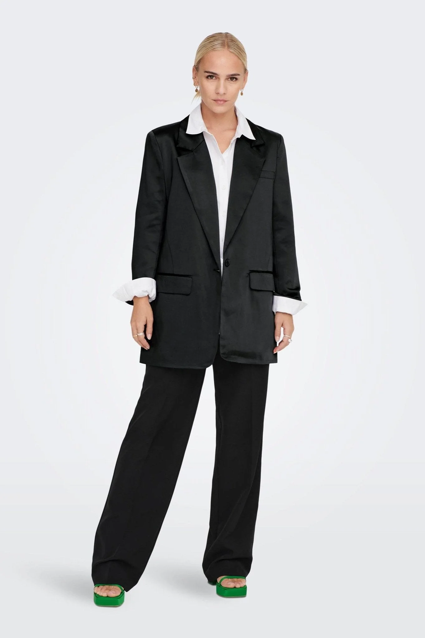 - Color negro clásico: La Blazer Lana-Mayra en negro es una pieza atemporal que complementa cualquier armario, añadiendo un toque de elegancia y versatilidad.