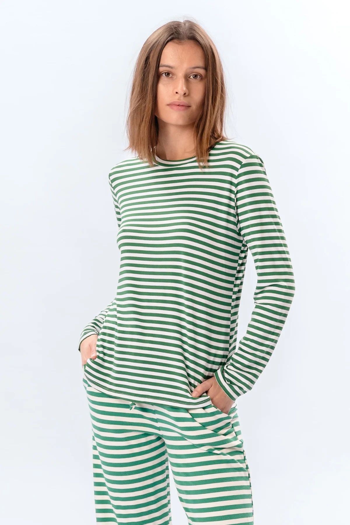 Te presentamos el Pantalón de Manga Larga a Rayas Slim Fit Verde, un complemento elegante para el armario de cualquier mujer. Esta prenda chic de TeeShoppen fusiona un estilo atemporal con materiales modernos para que te sientas elegante y cómoda. Confeccionada con precisión, su diseño entallado se adapta perfectamente a la silueta, mientras que las rayas verdes añaden un refrescante toque de color a tu conjunto. Ya sea para ir a trabajar o para salidas informales, esta camiseta de manga larga es lo bastante versátil para cualquier ocasión. Perfectamente diseñado para la mujer moderna que valora la comodidad y el estilo, este top promete ser una prenda imprescindible. Combínalo con tus vaqueros favoritos o una falda elegante para un look completo que desprenda confianza y gracia. Con este top, la comodidad se une a la elegancia moderna, permitiéndote destacar allá donde vayas.
