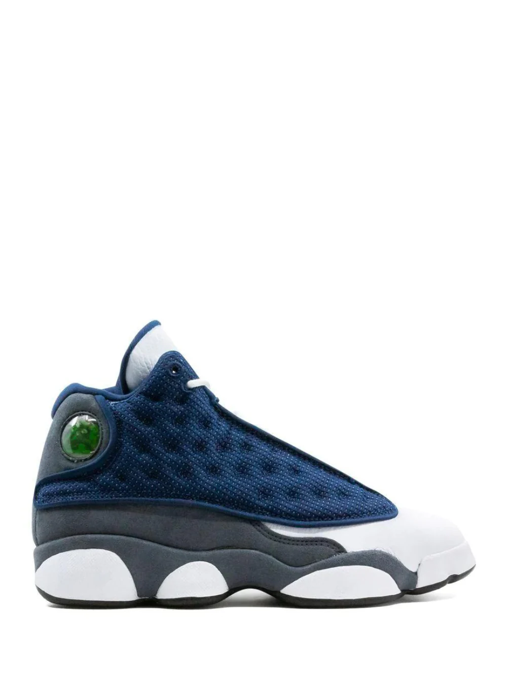 Azul, cuero, motivo Jumpman característico, puntera redonda, cierre con agujetas en la parte delantera, diseño por el tobillo, plantilla con logo y suela de goma.