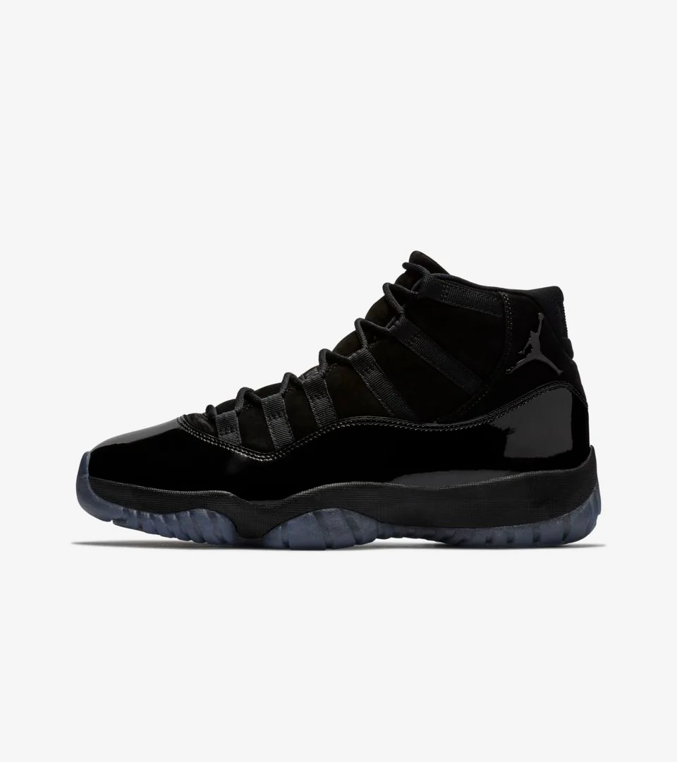 «Air Jordan 11 Retro «»Cap and Gown»» sneakers» en charol de color negro de Jordan con puntera redonda, suela plana de goma, cierre con cordón y al tobillo.