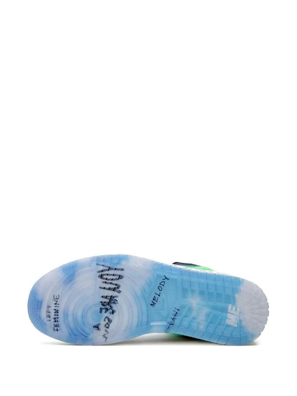 El Melody Ehsani x Air Jordan 1 Mid «Fearless» es una colaboración exclusiva para mujeres entre el diseñador de indumentaria y joyería de Los Ángeles y la marca Jordan. La combinación de colores que no coincide presenta un zapato derecho acentuado en naranja y rojo y paneles de cuero verde y azul audaces en el zapato izquierdo. Manteniéndose fiel a sus raíces en la escena de joyería y accesorios para mujeres, el “Fearless” Jordan 1 Mid de Ehsani incluye una esfera de reloj con detalles dorados en los cordones de cada dedo del pie. El diseño está rematado con una entresuela de color crema y un eslogan que dice «Si supieras que lo que tienes es raro, nunca lo desperdiciarías». Una suela exterior de color azul claro helado remata el llamativo diseño. El Melody Ehsani x Air Jordan 1 Mid «Fearless» para mujer se lanzó el 15 de noviembre de 2019.