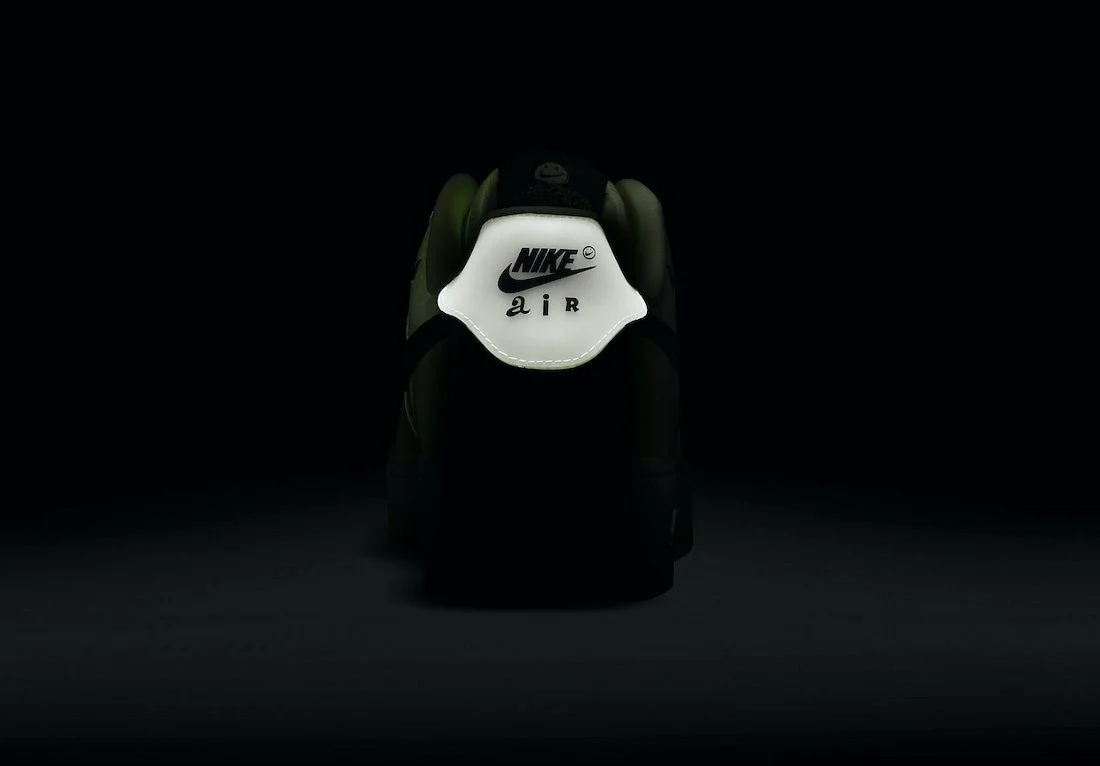 En los detalles, logramos presenciar la famosa sonrisa con un Swoosh de la línea, que en el par de color blanco brilla en la obscuridad en un color verde, mientras que en la otra versión se mantiene de color negro