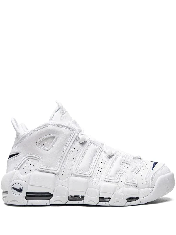 Blanco, azul, cuero, detalle del logo Swoosh característico, puntera redonda, cierre con agujetas en la parte delantera, doble lengüeta en la parte delantera, plantilla con logo y suela de goma.