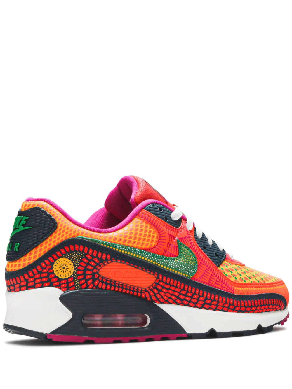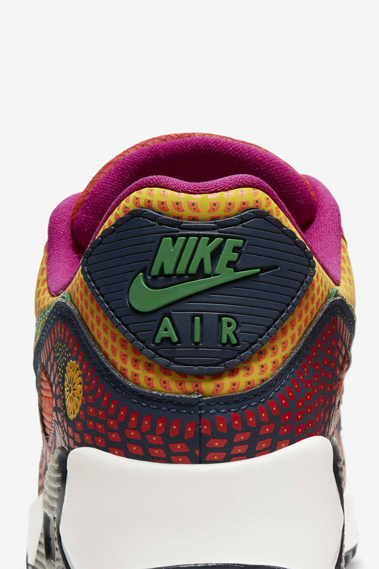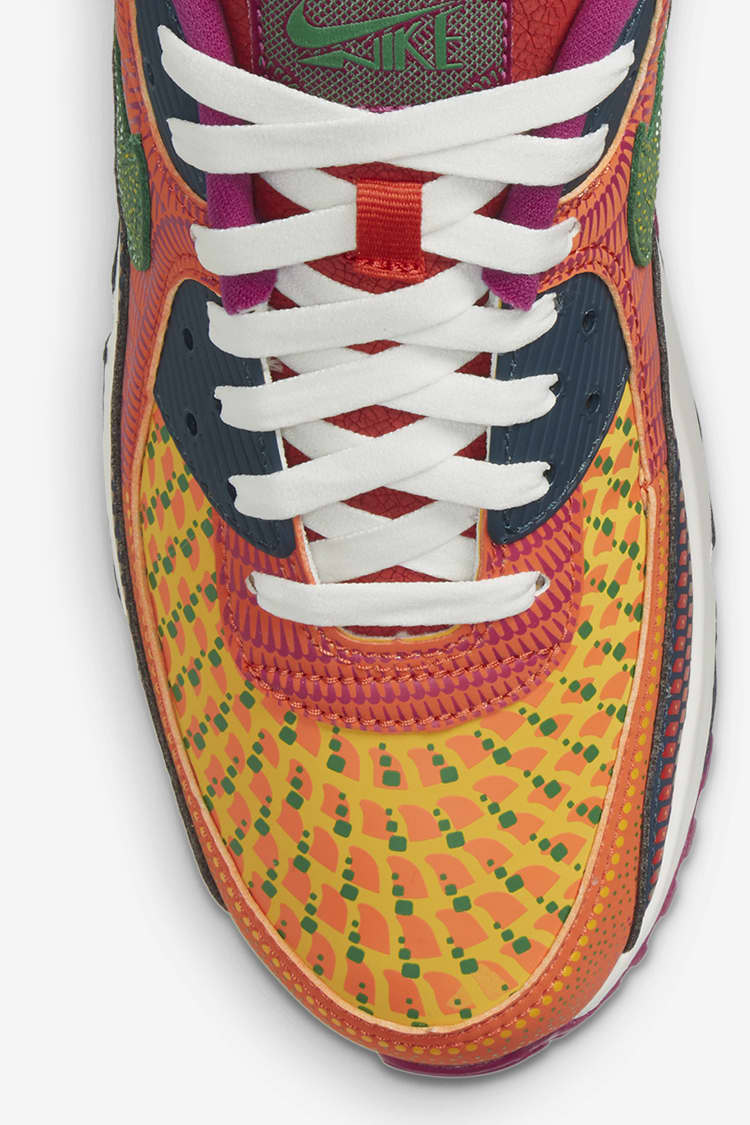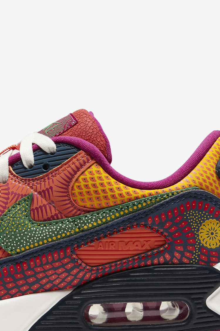 El diseño del calzado AM90 incluye colores brillantes y diferentes patrones, como los que se pueden ver en la parte superior del calzado. En la parte trasera, un cempasúchil tejido representa la flor de los muertos, cuya esencia es usada para reunir a los vivos con los familiares que ya departieron durante esta celebración.