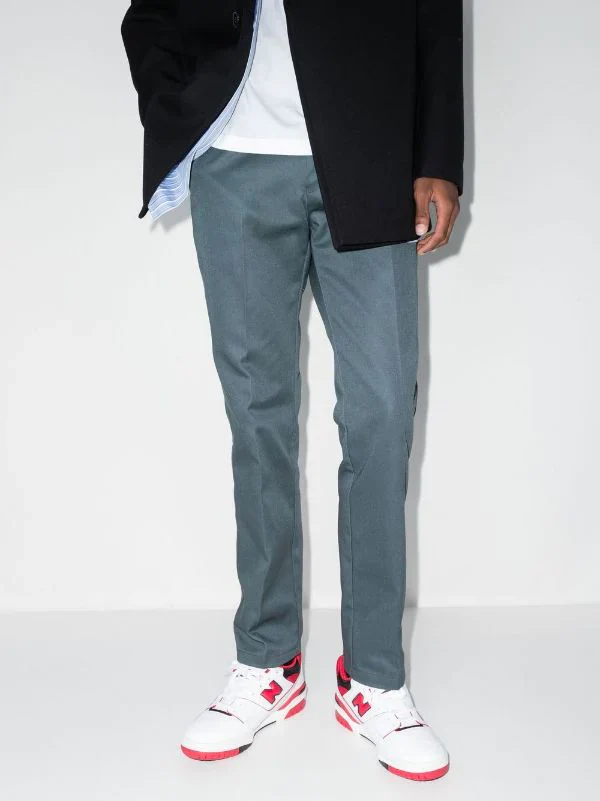 Rojo, blanco, cuero, parche del logo a un lado, logo estampado en la parte posterior, puntera redonda, cierre con agujetas en la parte delantera, parche del logo en la lengüeta, plantilla con logo y suela de goma.