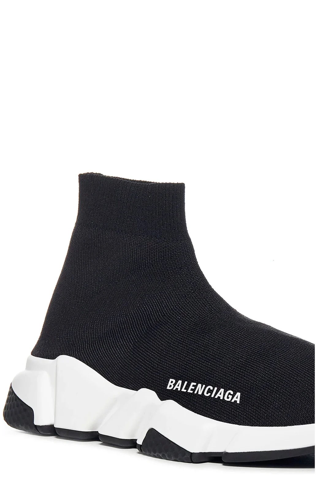 Estilo slip-on, empeine estilo calcetín, puntera redonda, logo estampado en el lateral y suela segmentada de goma. Material: algodón.