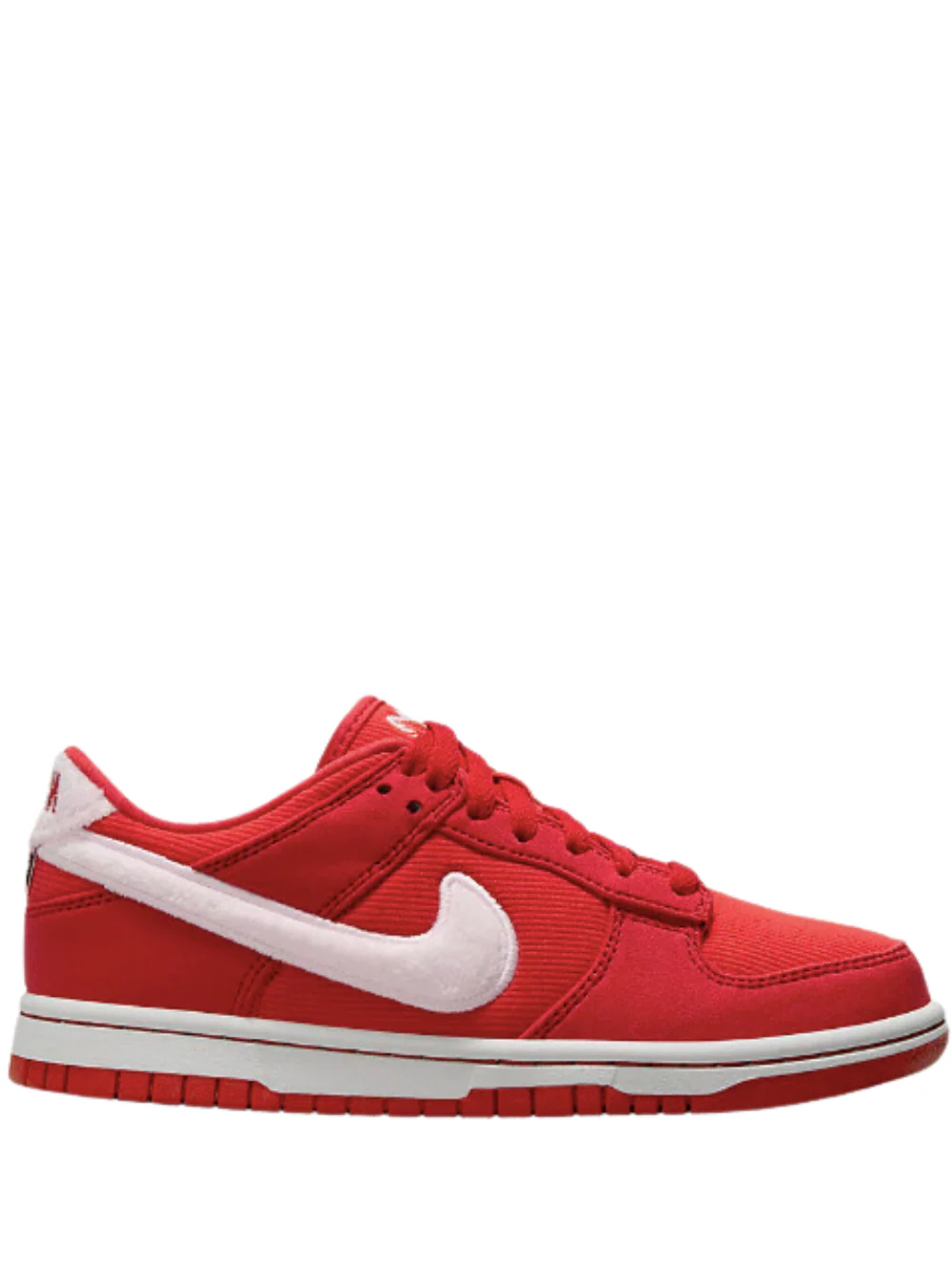 big swoosh de vellón o «peluche», pana en los paneles laterales, toe box y el collar y gamuza por todo el sneaker. Esta vez la lengüeta no tiene etiqueta y aparece un corazón con la palabra NIKE y un Swoosh.