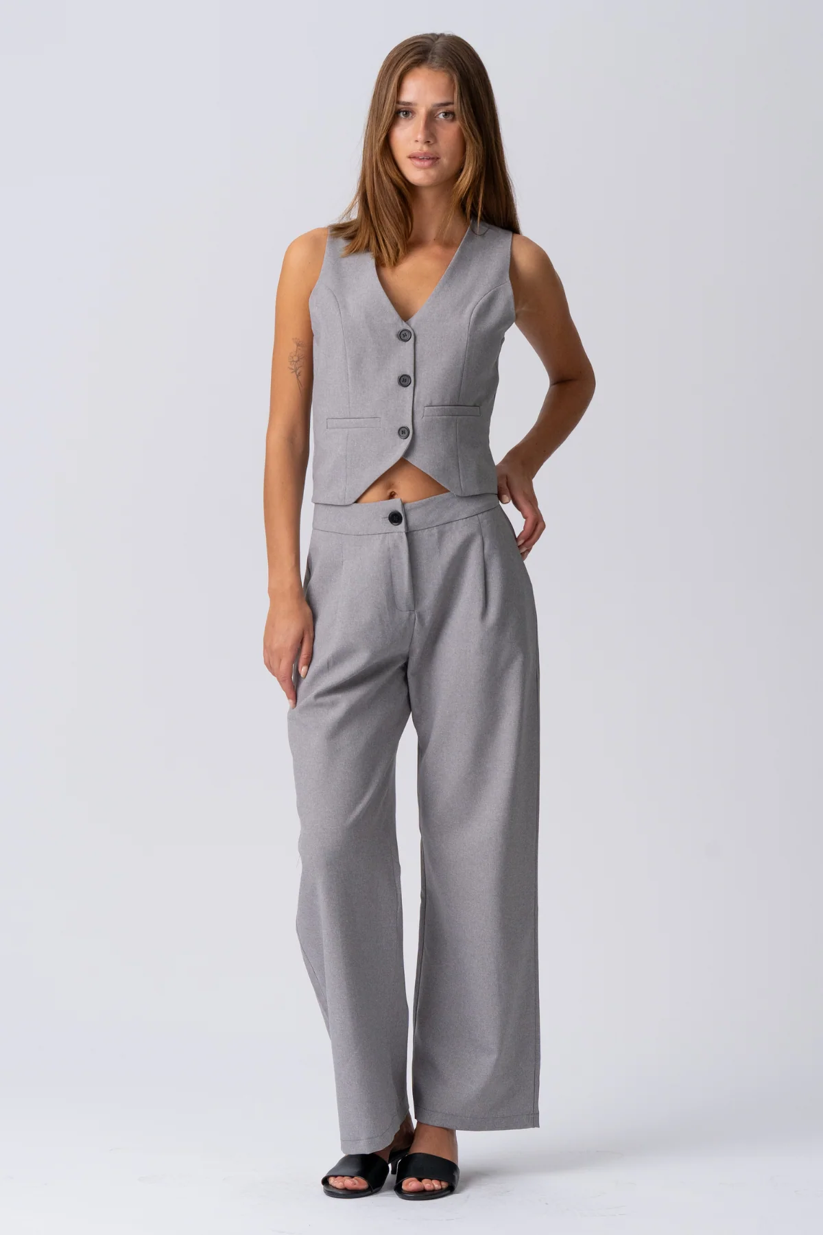 • Elegancia nocturna: Eleve tu aspecto para una noche emparejando el Natalie Pants con una delicada camisola de encaje, joyas de declaración y elegantes sandalias de tacón. El color gris claro proporciona un lienzo perfecto para accesorios más audaces.