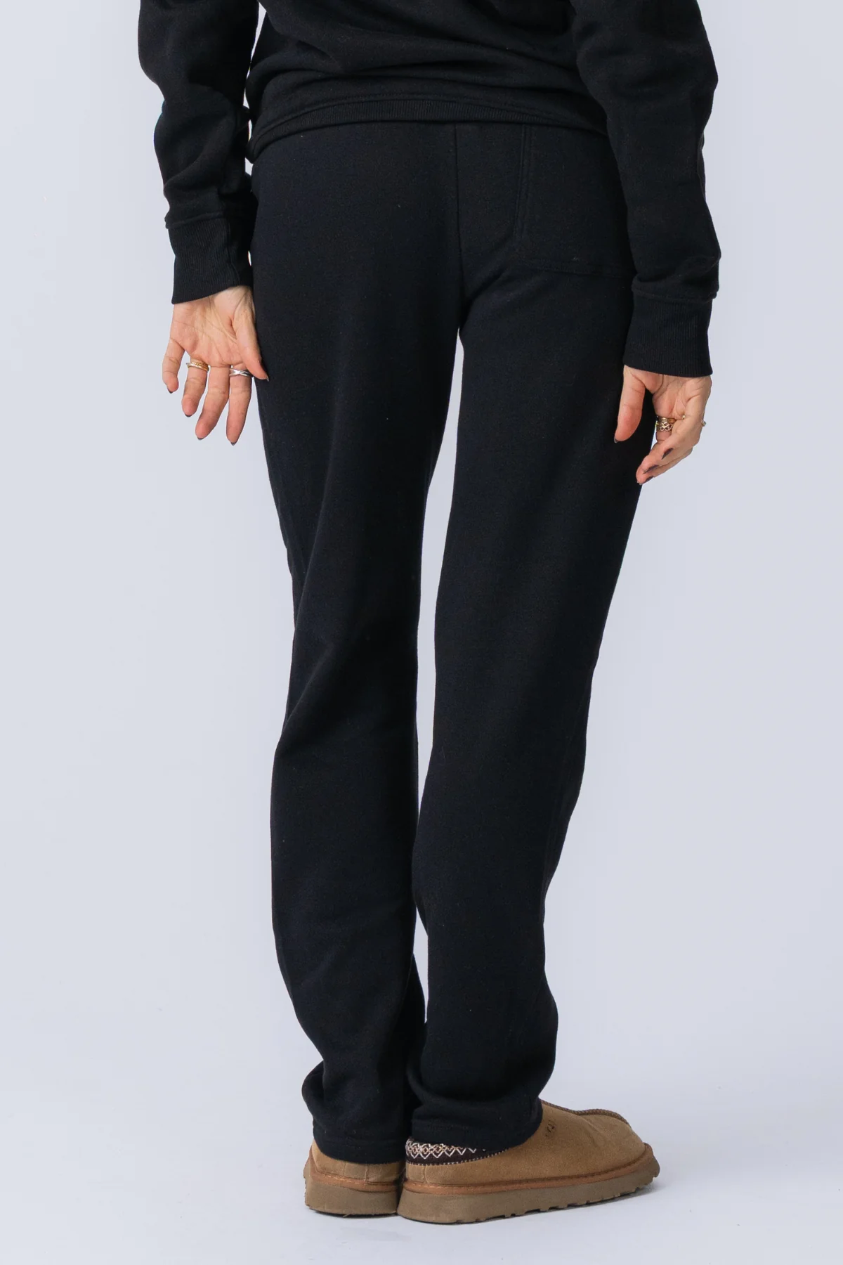 La verdadera belleza de estos pantalones deportivos Essential Black es su absoluta versatilidad. Trascienden la típica ropa de estar por casa y se convierten en un elemento básico flexible para cualquier mujer moderna.s armario.