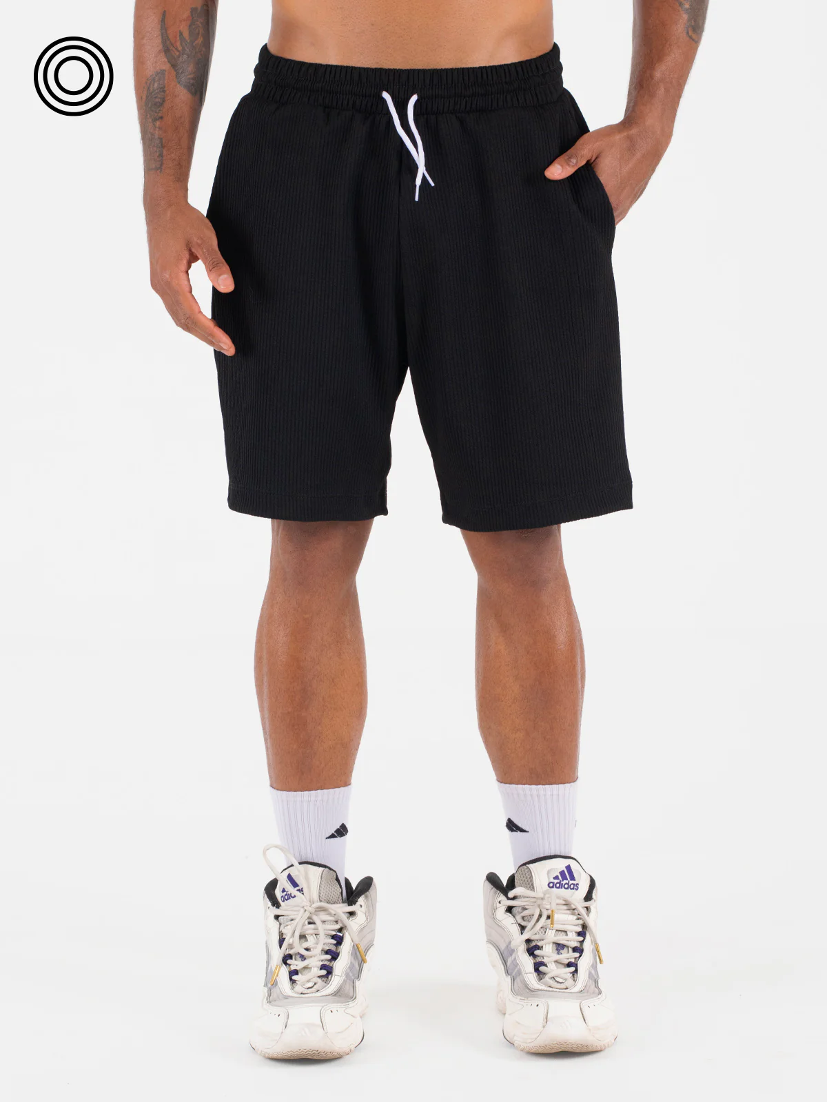 Pantaloneta: básica con bolsillos delanteros y pretina resortada con cordón.