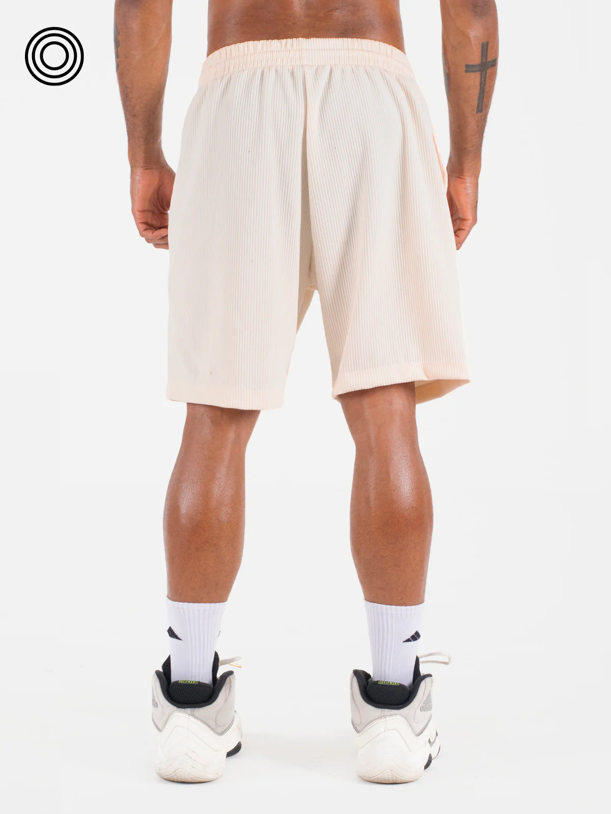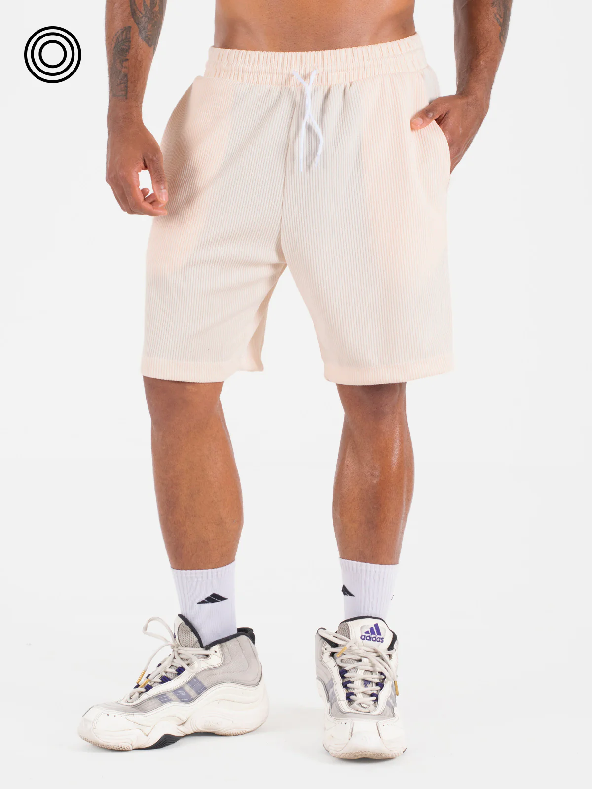 Pantaloneta: básica con bolsillos delanteros y pretina resortada con cordón.