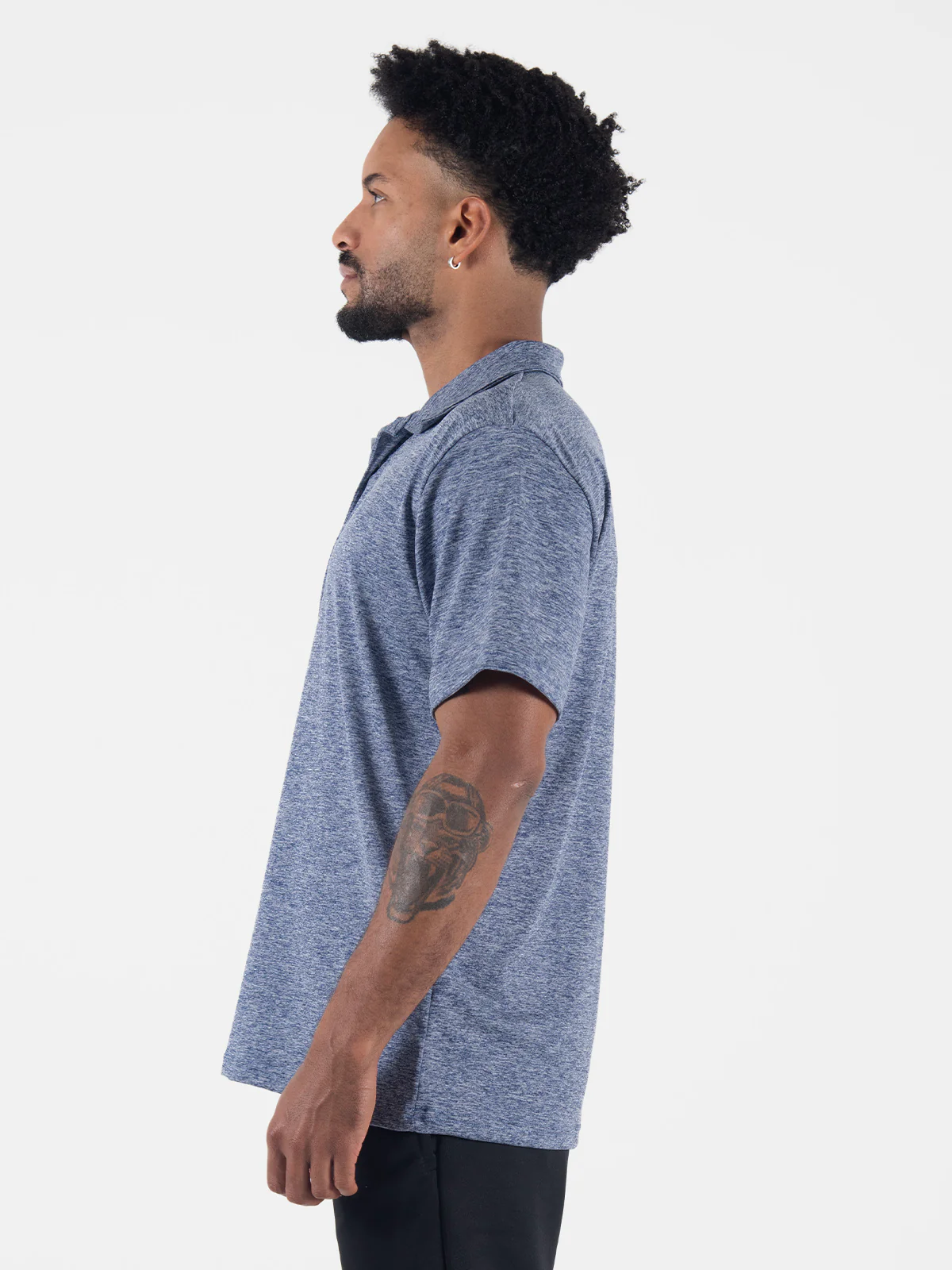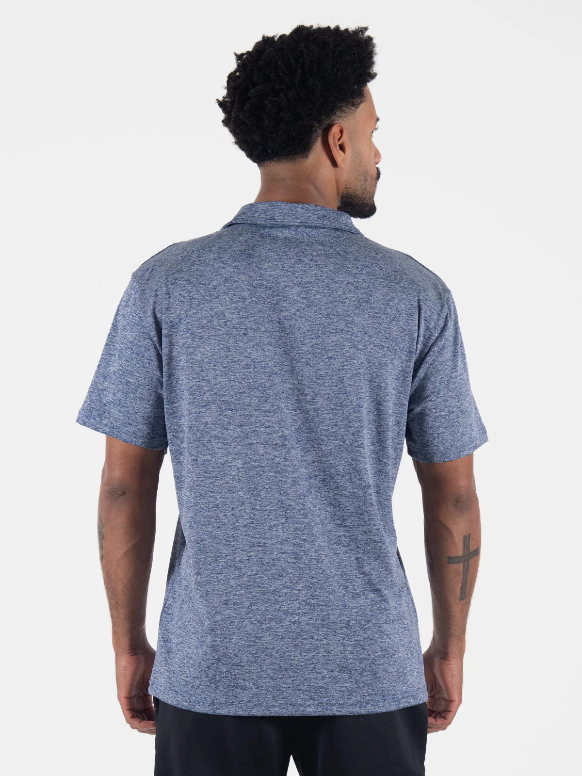 Polo masculino con cuello en la misma tela para un acabado limpio y moderno. Cuenta con tapacuellos contramarcado, perilla con tres botones y detalle en transfer ubicado en el punto corazón. Su tela flexible y de alto rendimiento ofrece comodidad, frescura y un look deportivo-casual para cualquier ocasión.