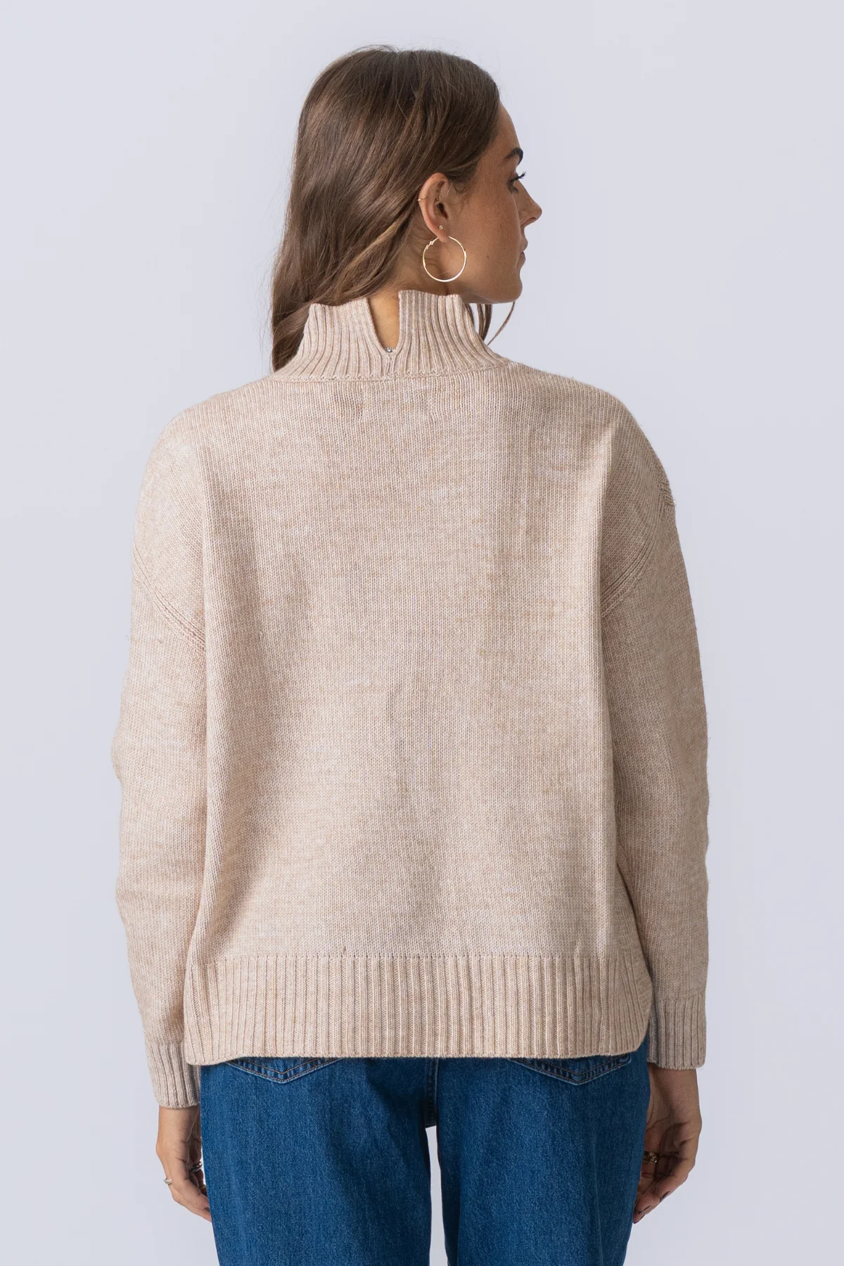 - Estilo versátil: El color beige y el diseño clásico hacen de este jersey un complemento versátil para tu armario, adecuado para diversas ocasiones, desde salidas informales hasta fines de semana relajados.