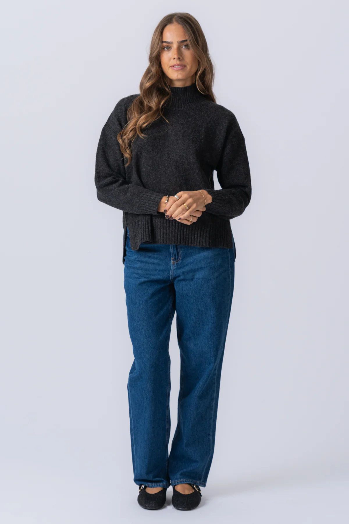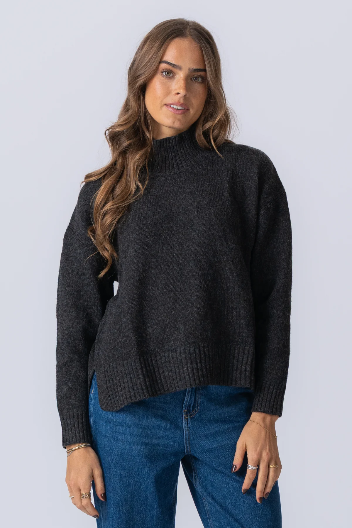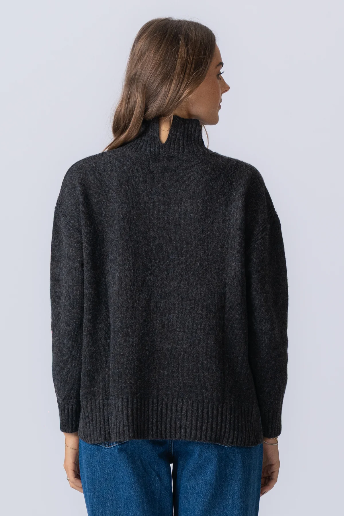 El elegante tono gris oscuro melange complementa cualquier armario.