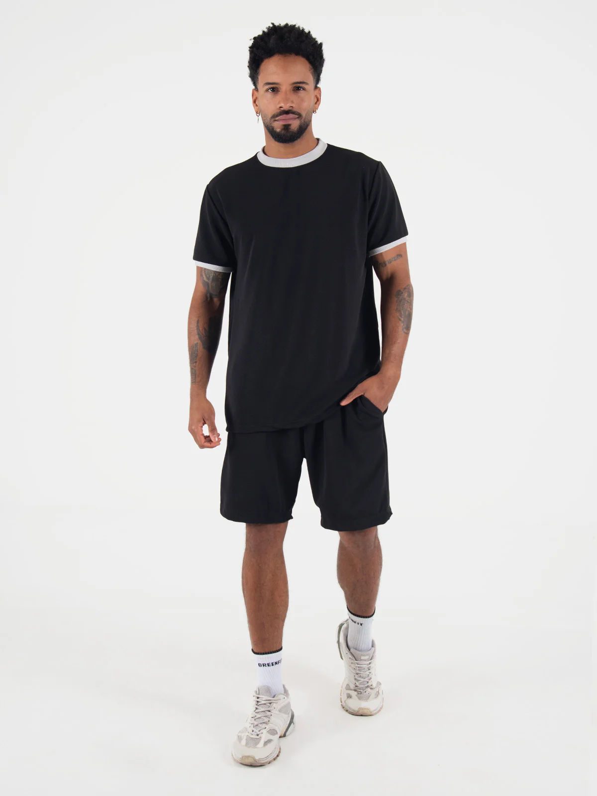 Pantaloneta: con bolsillos delanteros y pretina resortada con ojales y cordón.