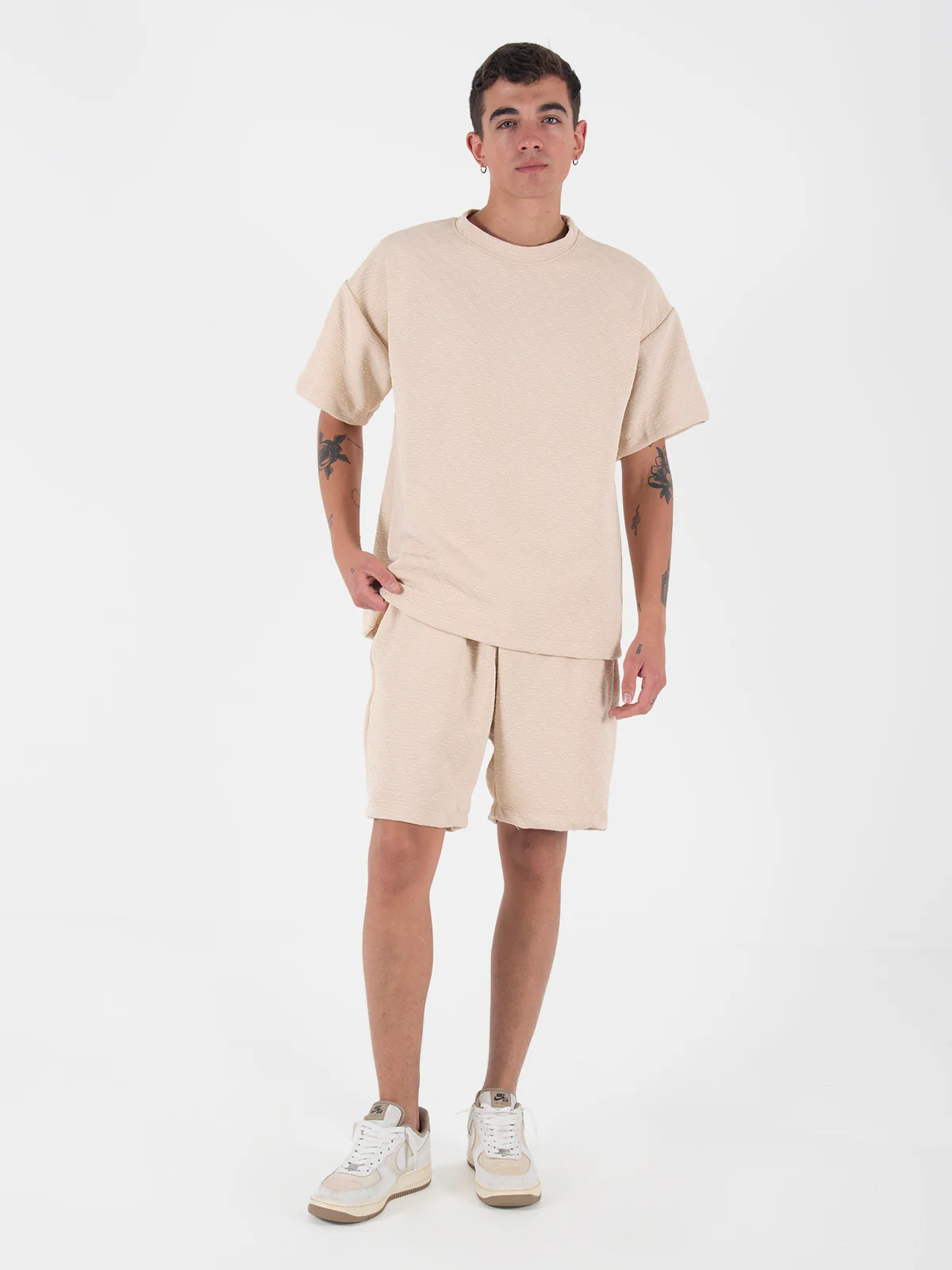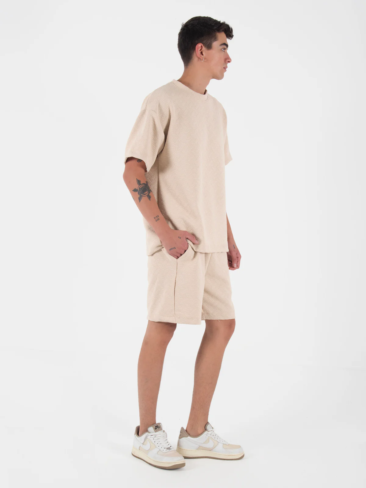 Camiseta: Silueta tipo oversize con manga corta y cuello ancho, brindando un estilo relajado y moderno ideal para uso diario.