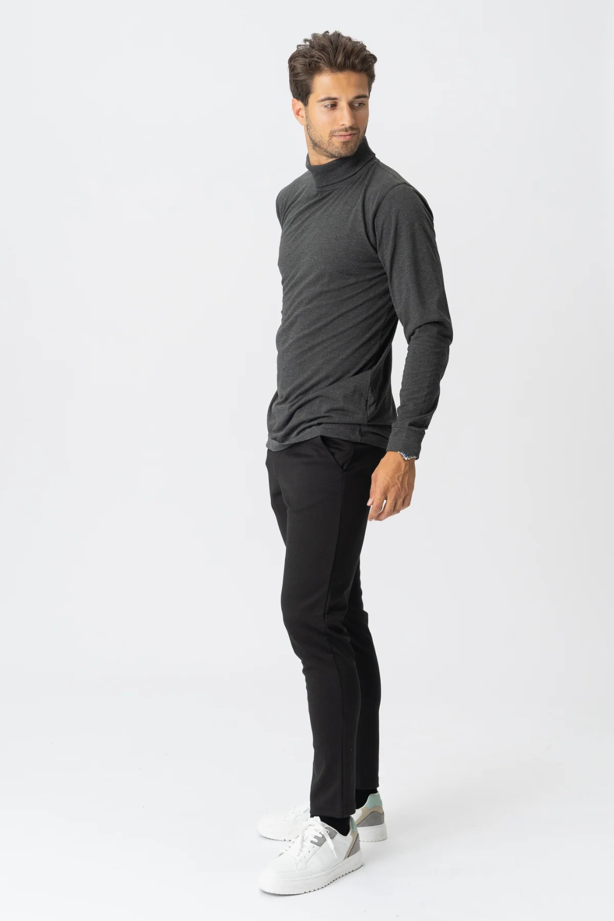 Séter de cuello roll – gris oscuro: sofisticación clásica, borde moderno