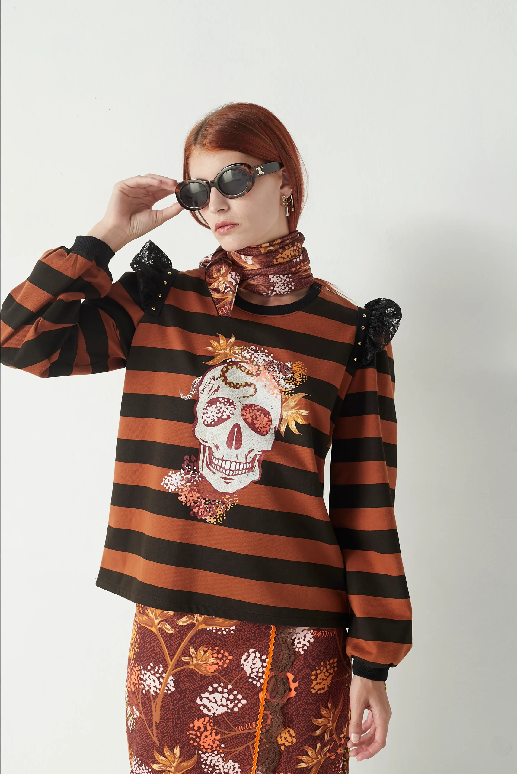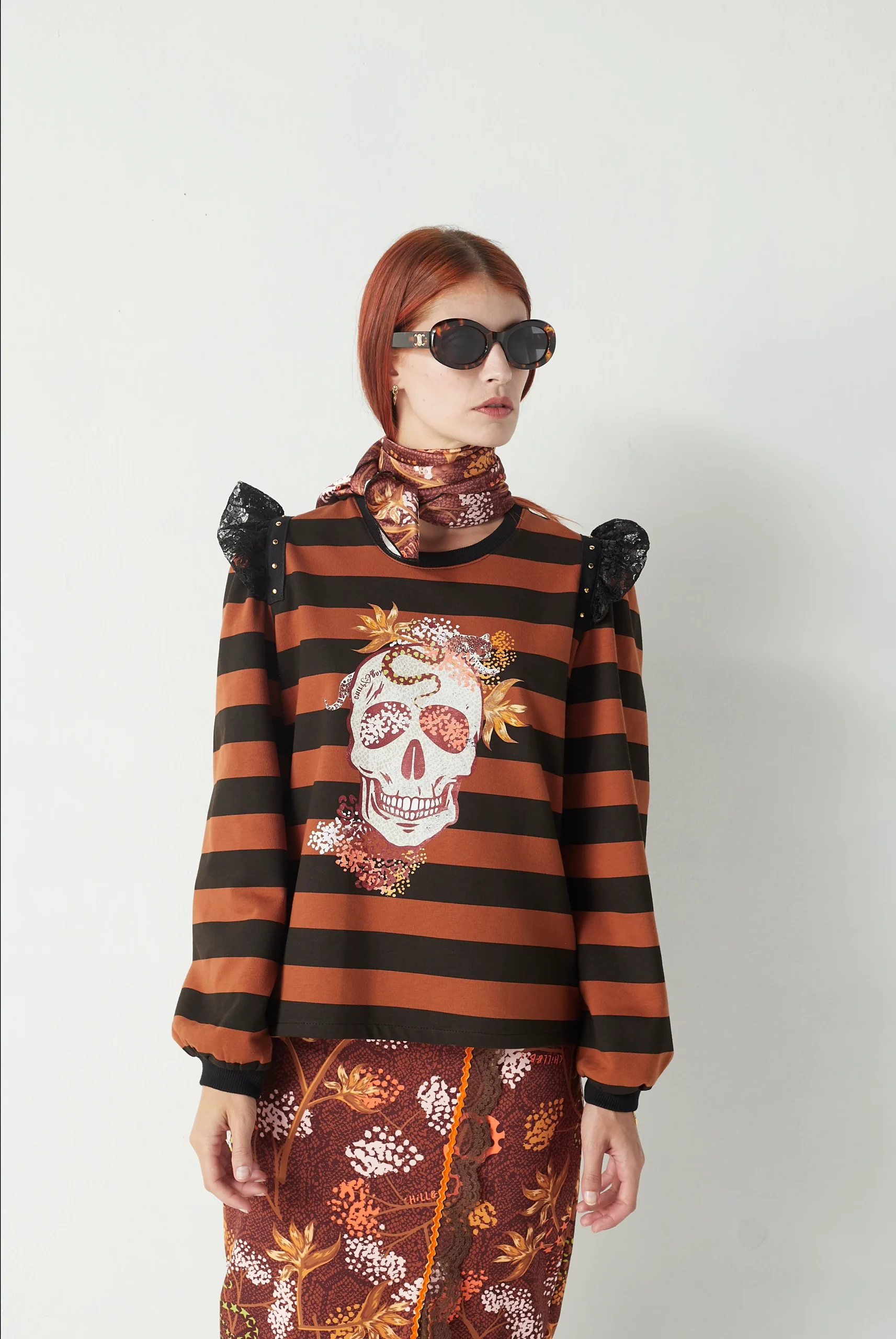 Sudadera Rayas Skull Floral