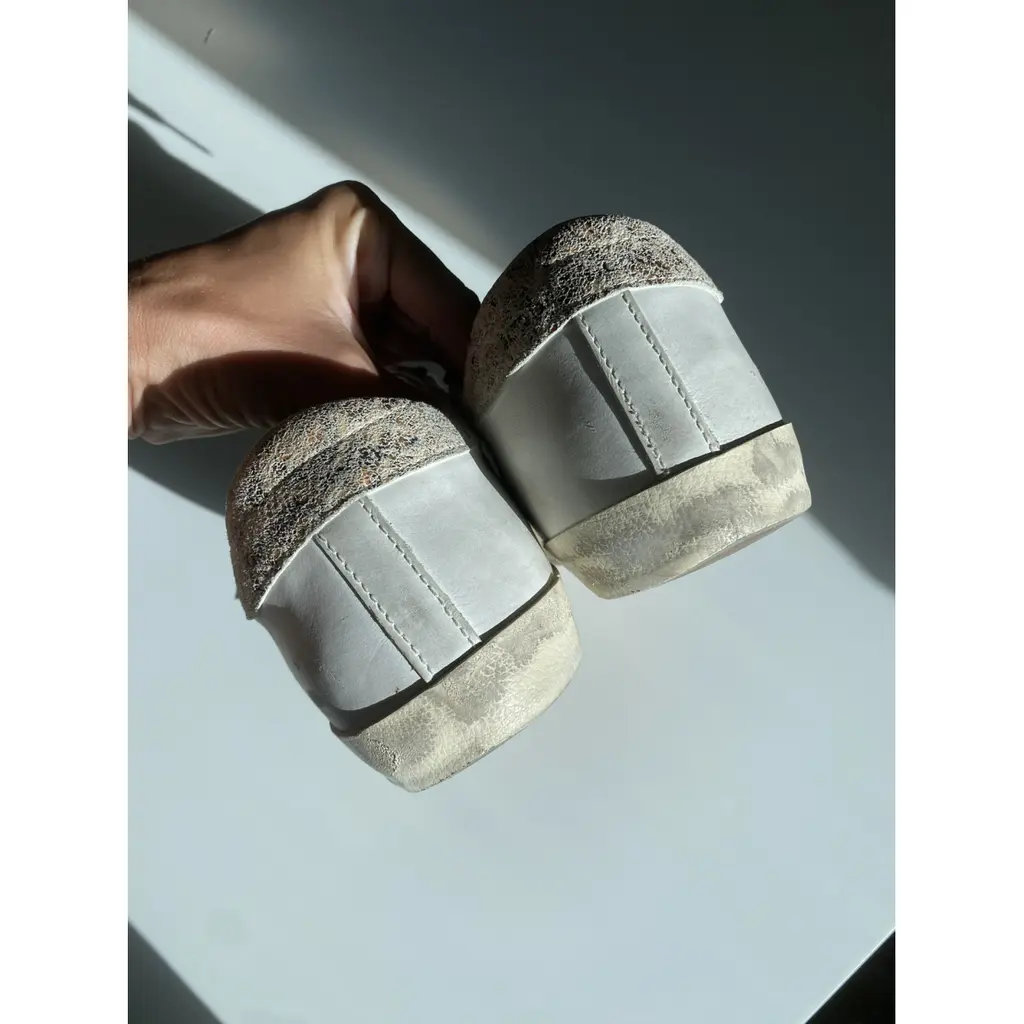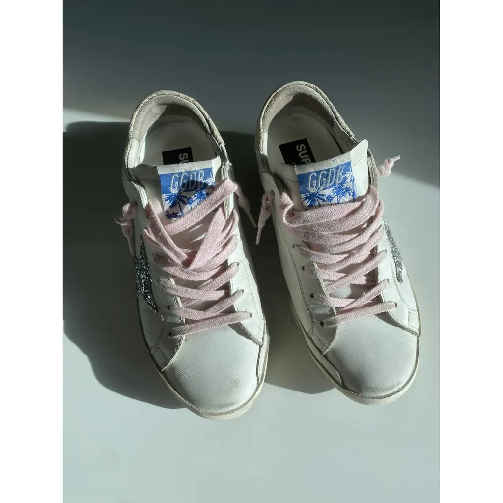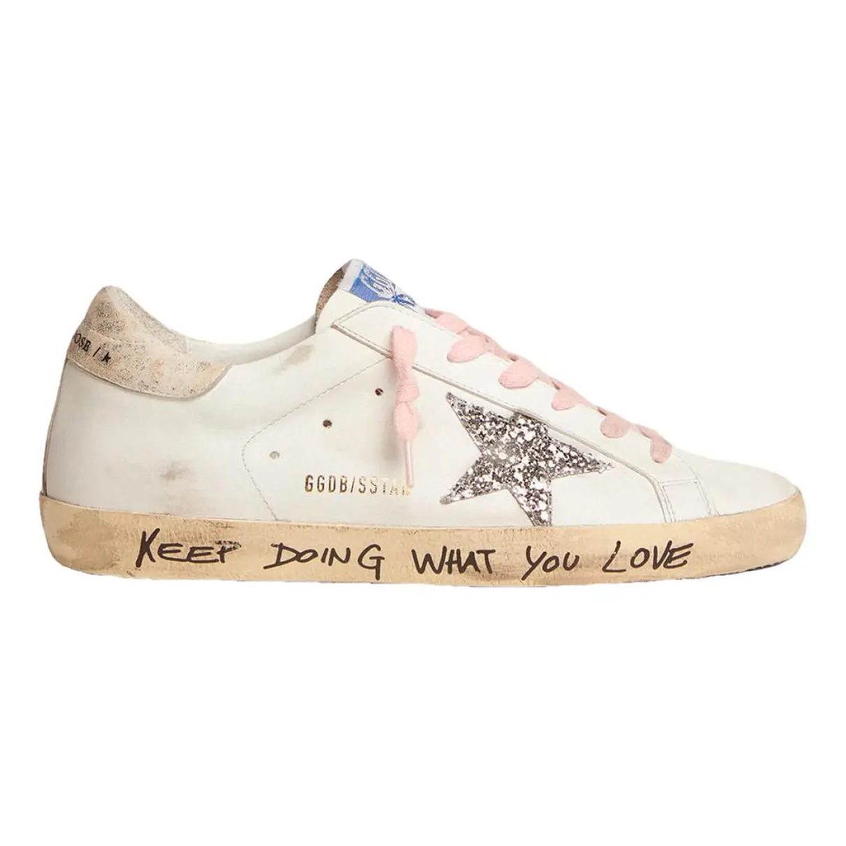 Las zapatillas deportivas Super-Star de hombre, artículo atemporal de la casa Golden Goose, se renuevan con materiales y tratamientos innovadores para acompañar sus colecciones temporada tras temporada. Zapatillas deportivas contemporáneas y alegres gracias a detalles brillantes como la cinta foxing con tratamiento brillante dorado, combinada con la estrella GGDB y el refuerzo de talón a juego. Caracterizadas por motivo de letras de metal.