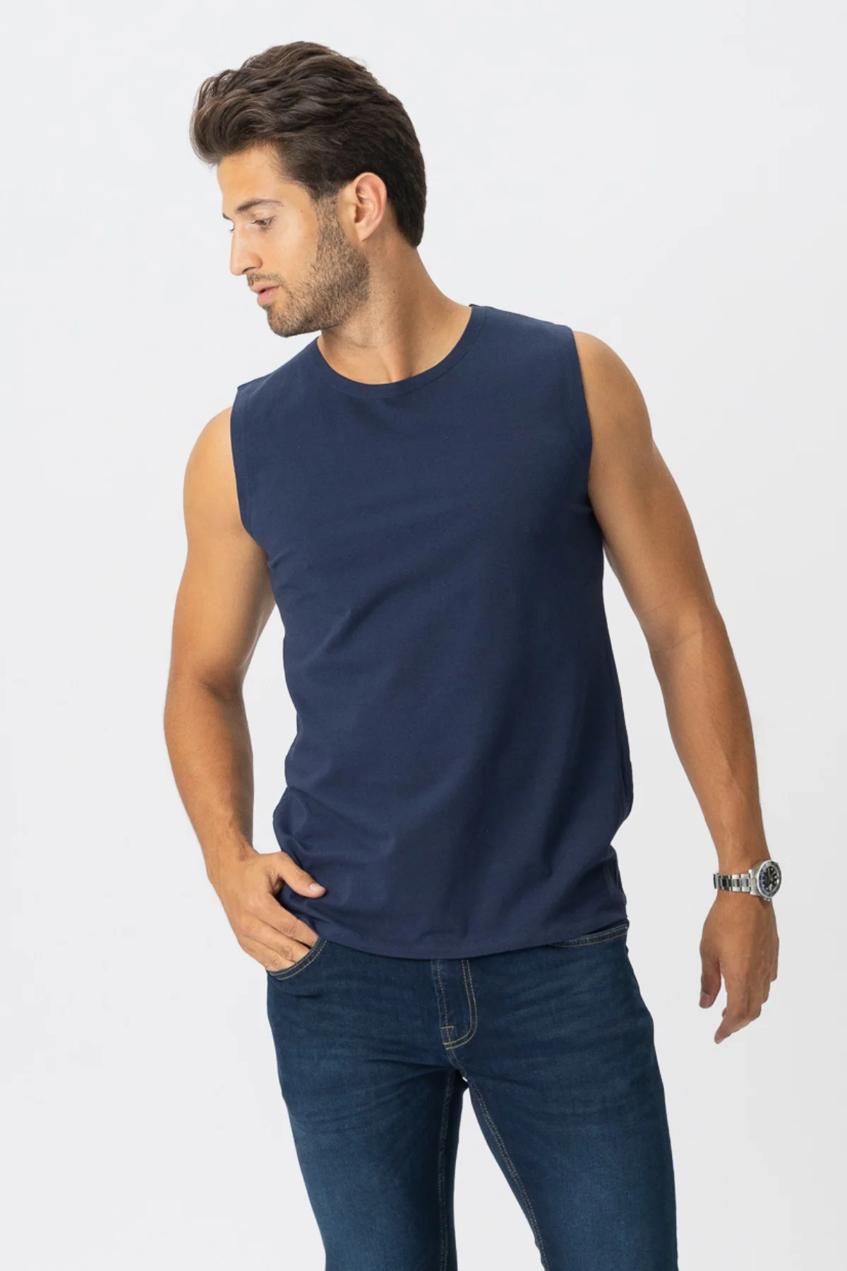 Nuestra camiseta sin mangas en azul marino de TeeShoppen: El complemento perfecto para tu armario