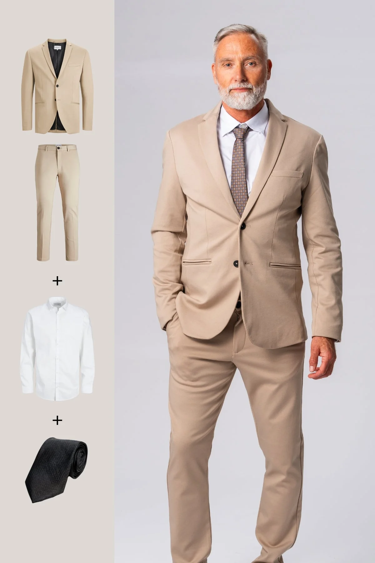 Adéntrate en la sofisticación con The Original Performance Suit™️ en arena, emparejado con un premium camisa y corbata Conjunto para elevar tu guardarropa a nuevas alturas. Este paquete exclusivo está diseñado para capturar la esencia de la elegancia moderna y la artesanía impecable, lo que lo convierte en una herramienta imprescindible para los más exigentes. caballero.