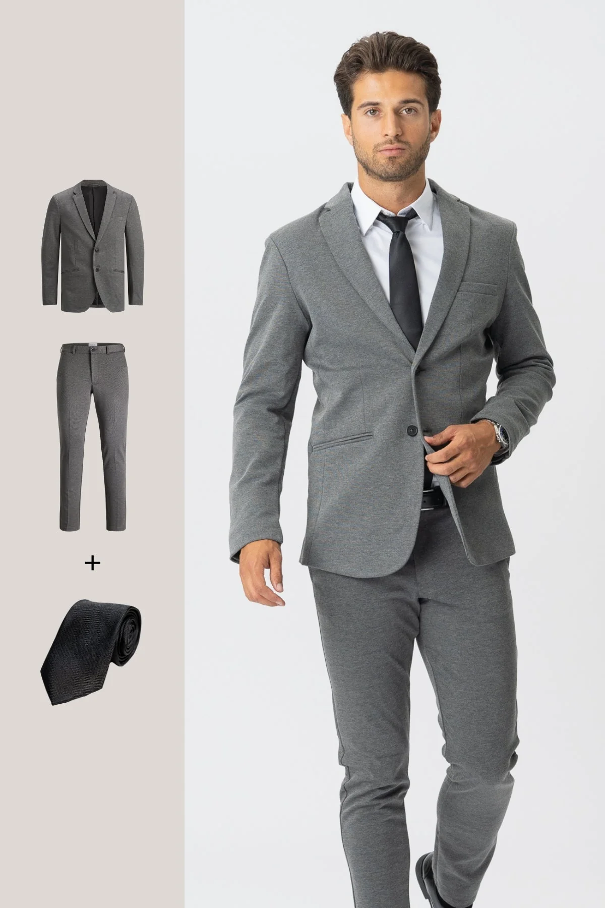 Transforma tu guardarropa con The Original Performance Suit™️ (Gris oscuro) + Corbata – Oferta de paquete
