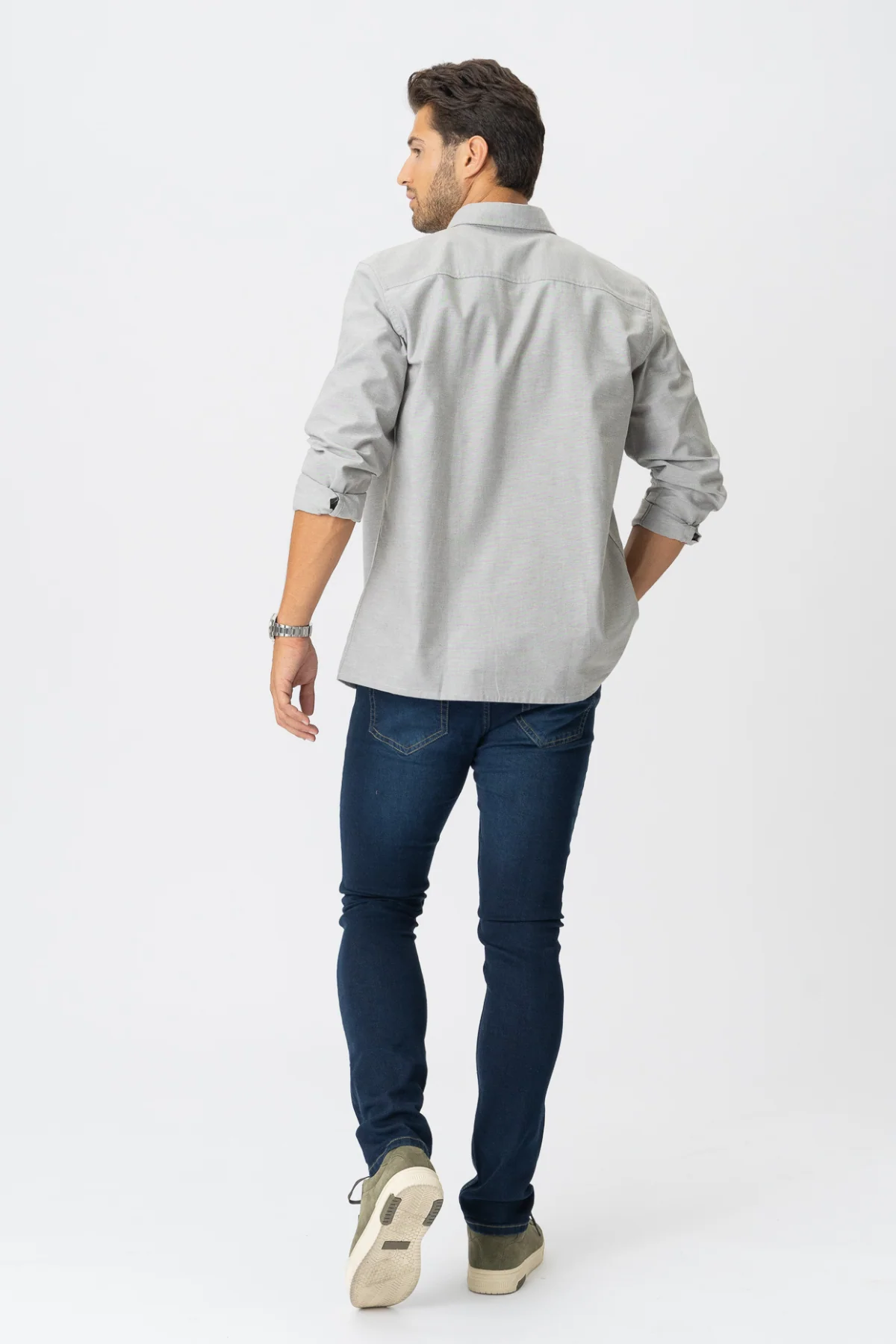 El tejido vaquero azul oscuro realza su versatilidad, adecuado tanto para entornos informales como smart-casuales.