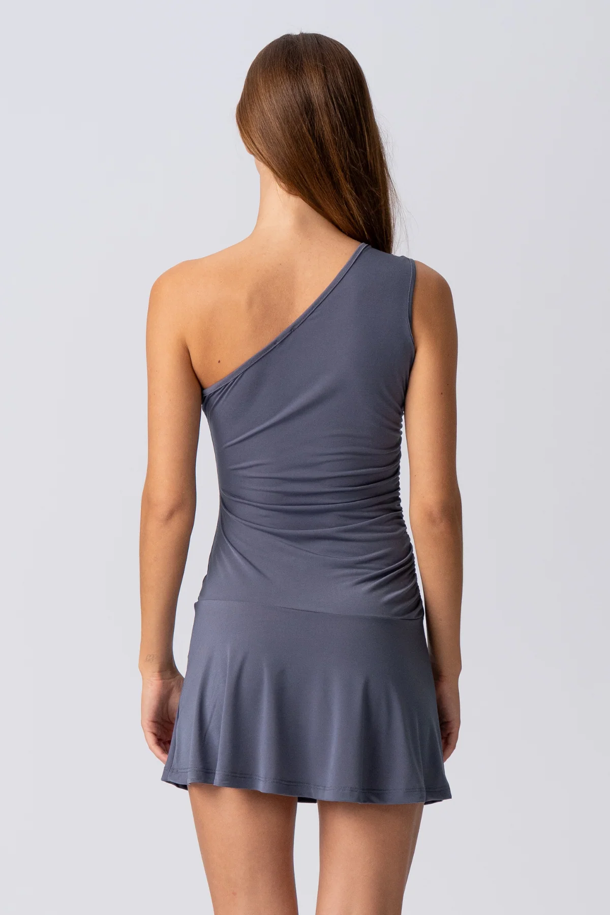Hacer una entrada inolvidable: el vestido de un hombro de Valentina en gris sofisticado
