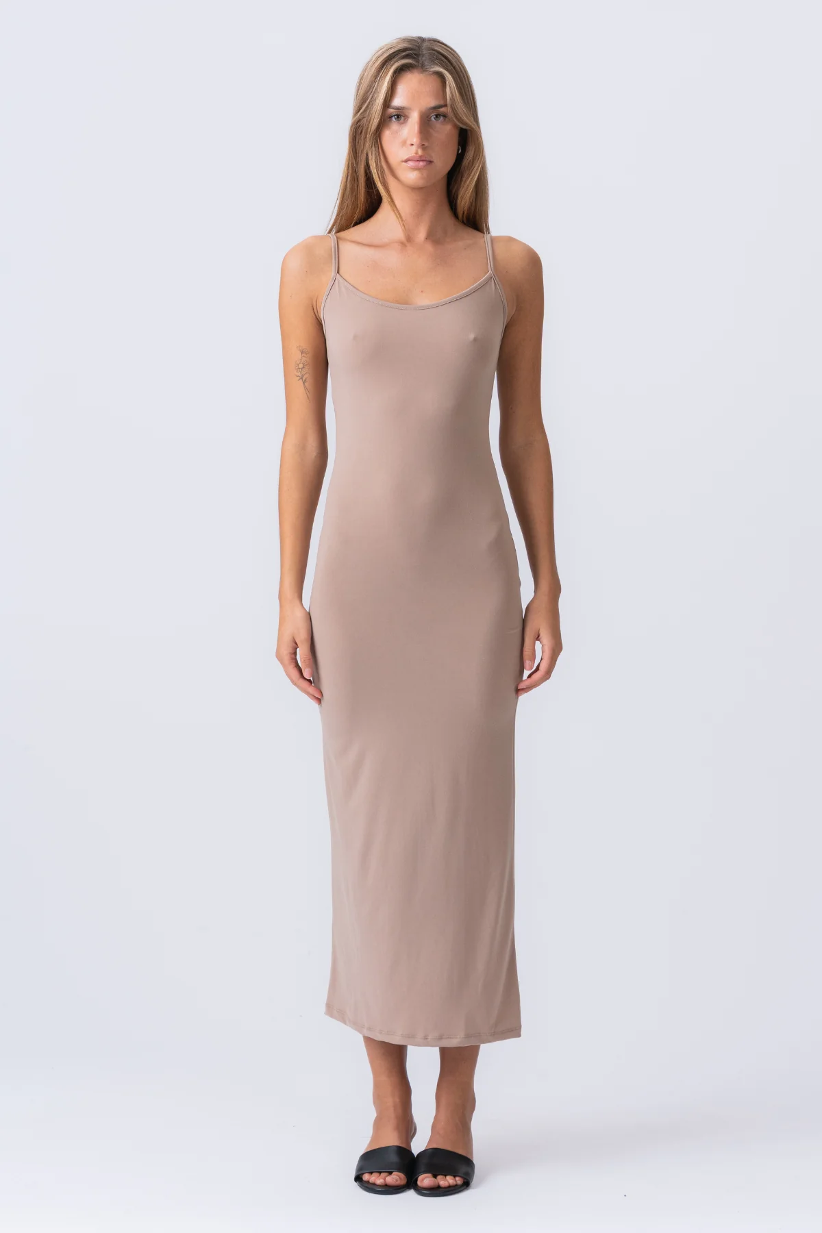 Abrazar elegancia sin esfuerzo: el vestido de Amaya Maxi en beige