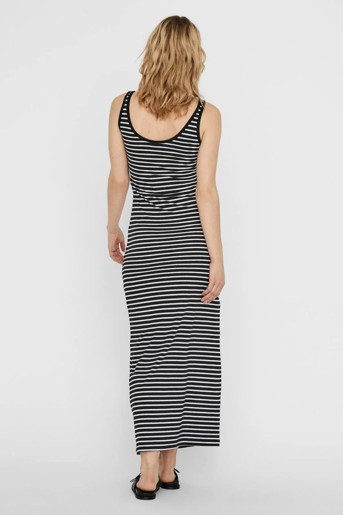 Summer es sinónimo de estilo sin esfuerzo y vestidos ventajosos, y el vestido de María de Vero Moda encarna la esencia de Summer Chic. Con su clásico patrón de rayas en blanco y negro y su delicado hombro, este vestido es imprescindible para el guardarropa de verano de cada mujer.