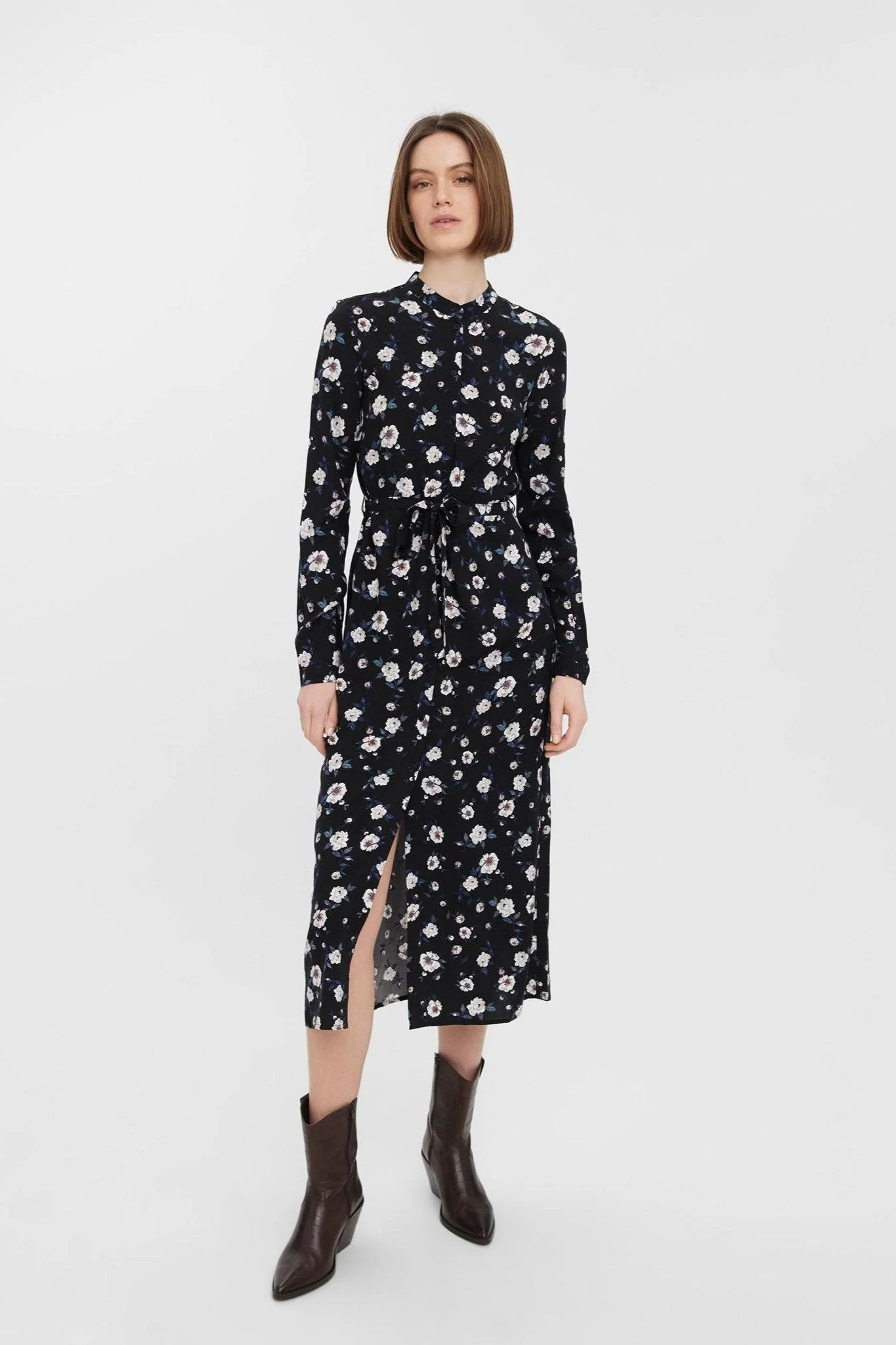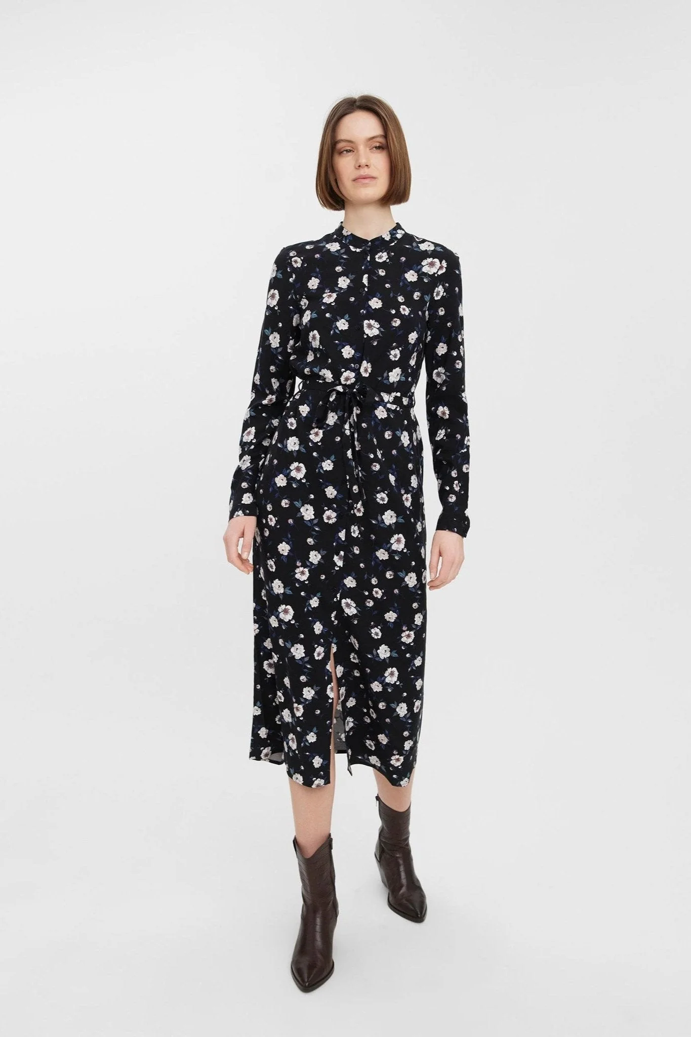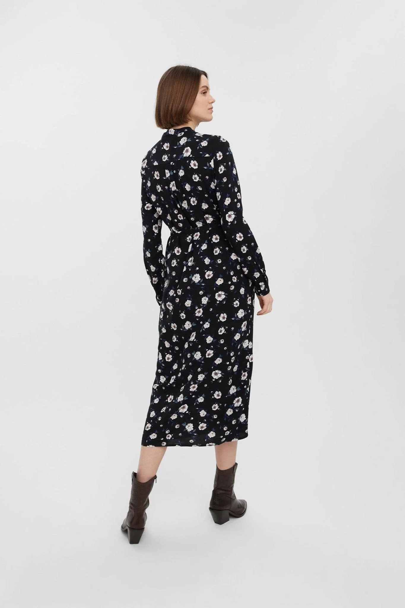 Vestido fácil de camisa de manga larga – negro