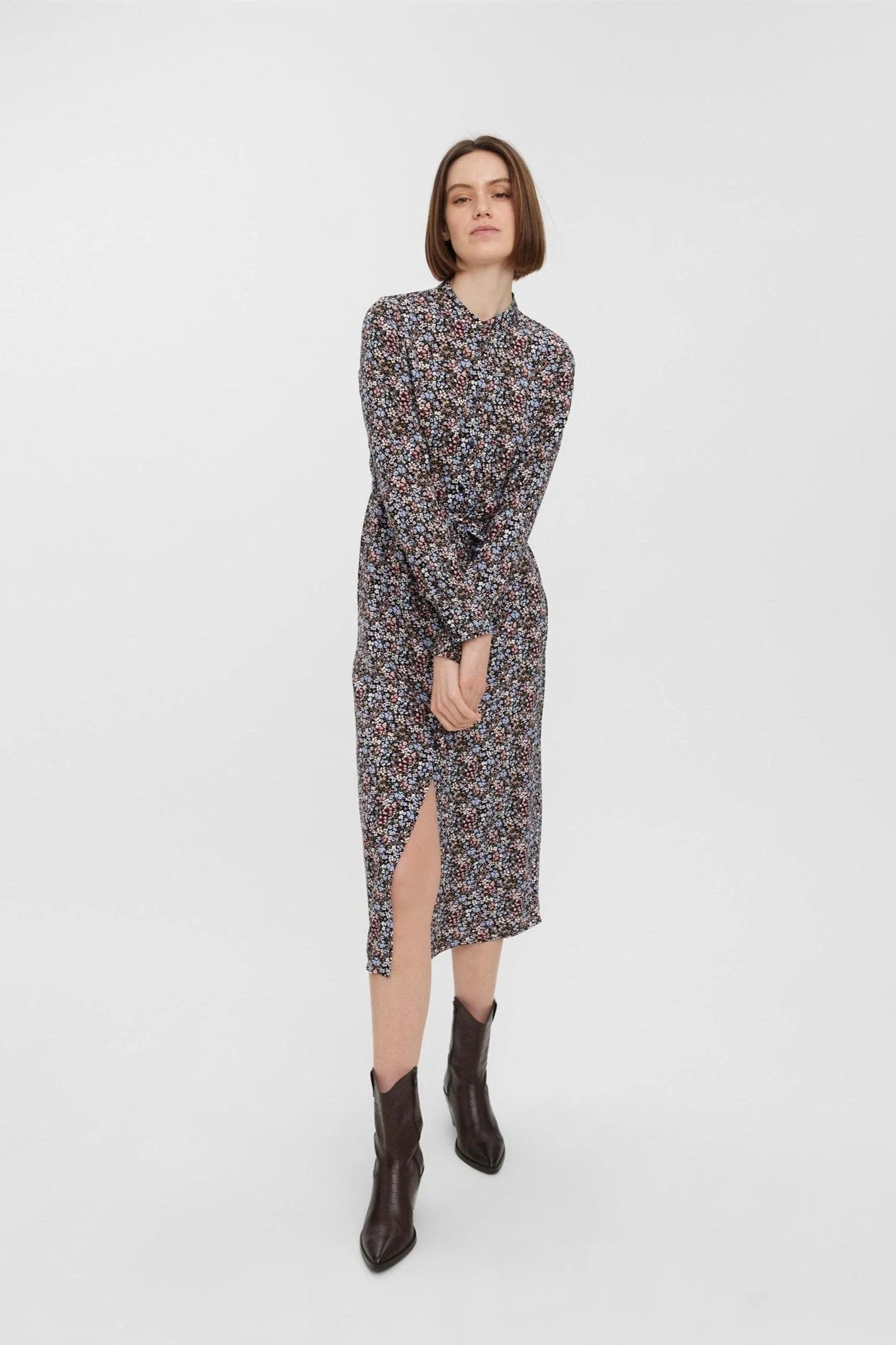 Eleve tu estilo con la camisa larga y fácil Vestido – Negro con flores azules de Vero Moda