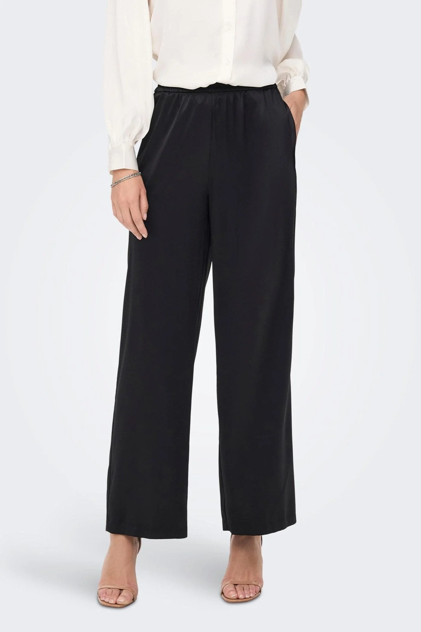 Adéntrate en la sofisticación con la Victoria Satin Bukser – Sort, una refinada propuesta de TeeShoppen hecha a medida para la mujer madura: