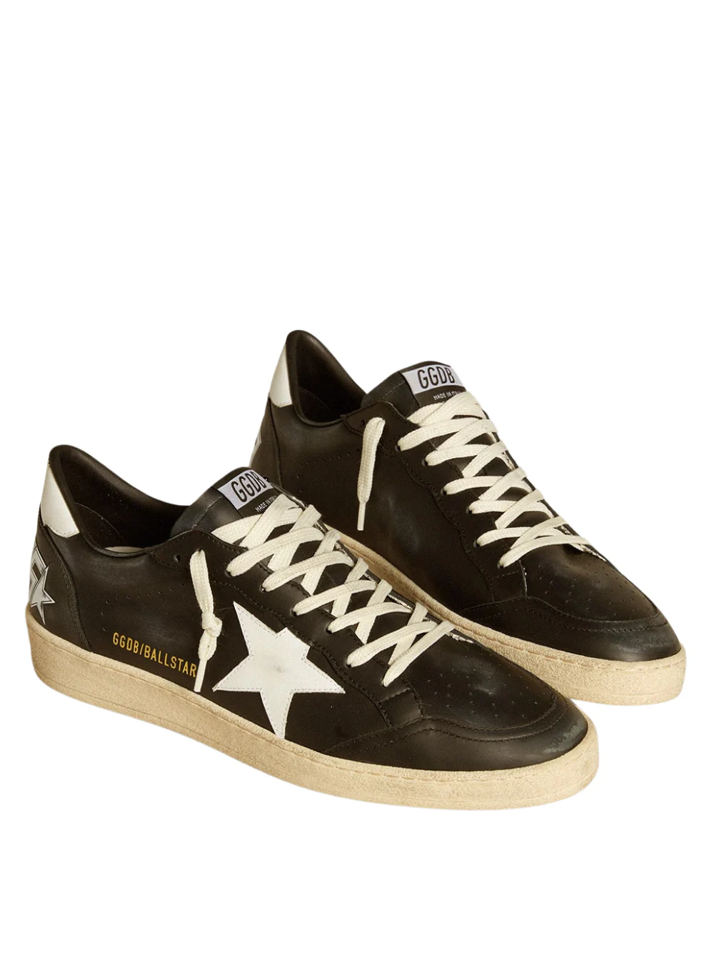 Tenis Golden goose Ball Star de napa negra con estrella y refuerzo del talón de piel blanca