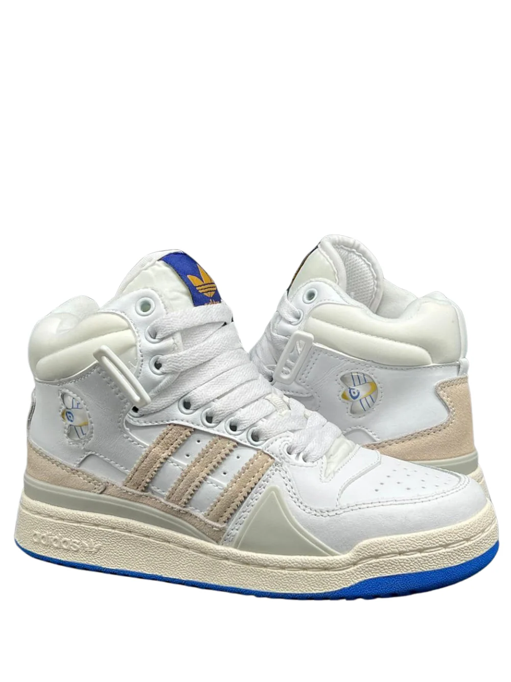 N372O Adidas forum bota blanco beige suela azul