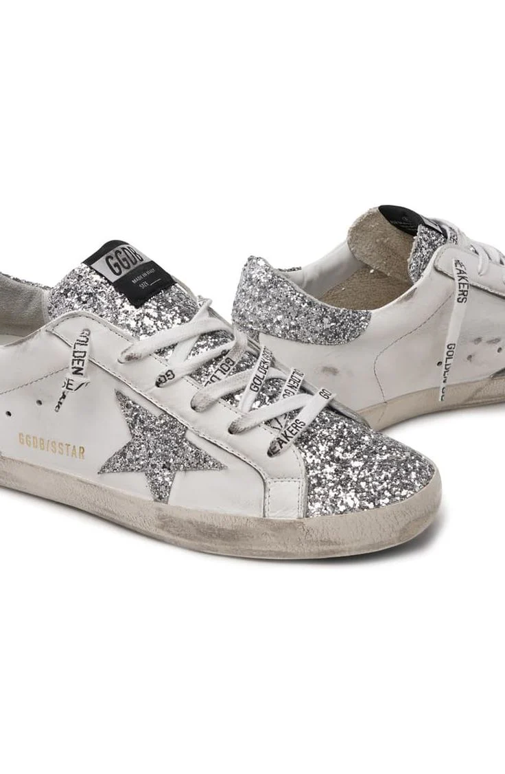 N373O GOLDEN GOOSE Superstar White Leather & Gray Star Sneaker