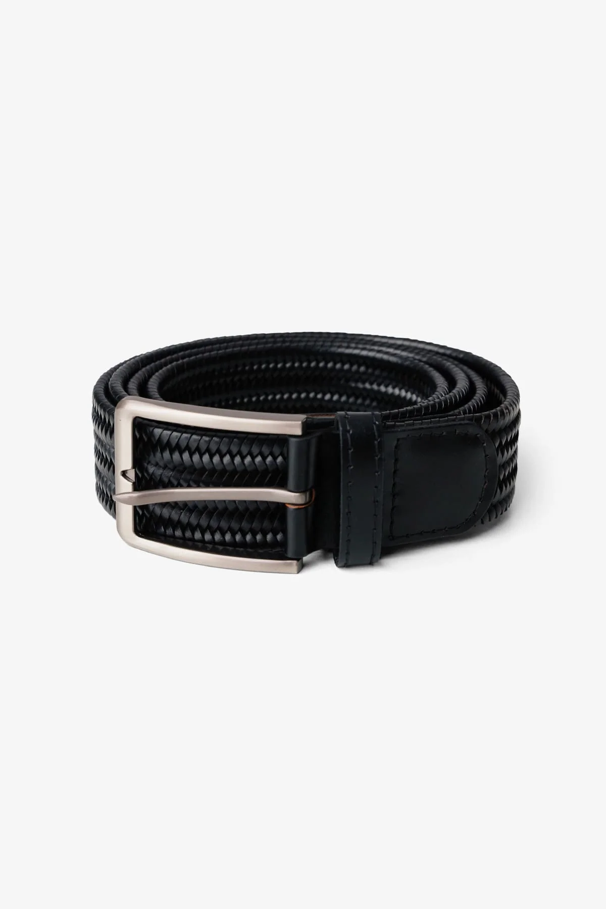 Avery Cuero trenzado Slim Cinturón – Negro